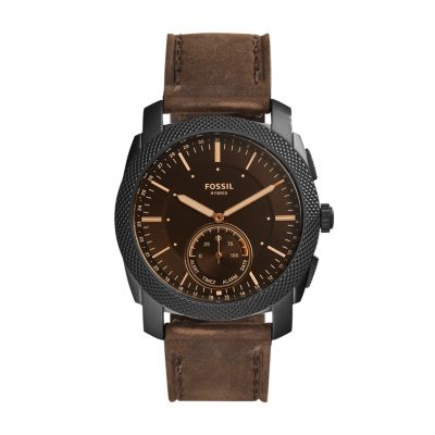 Fossil Neutral Hr Hybrid Smartwatch Watch With Brown Leather Strap Ftw